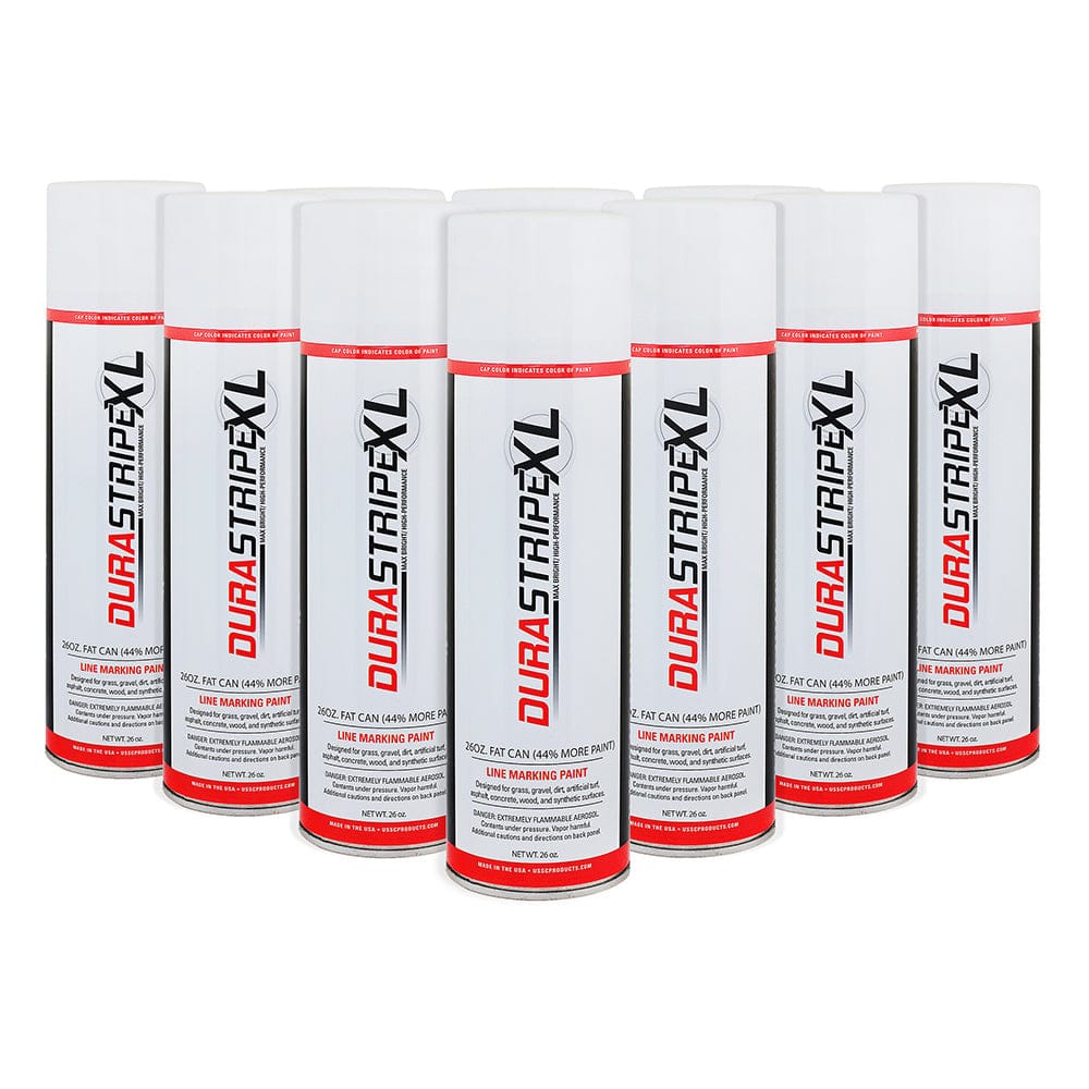 Large 26-ounce aerosol paint cans for athletic field striping/line marking.