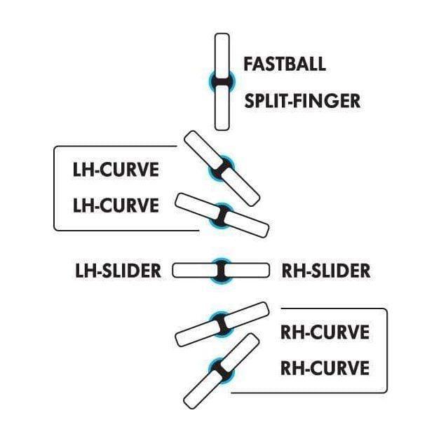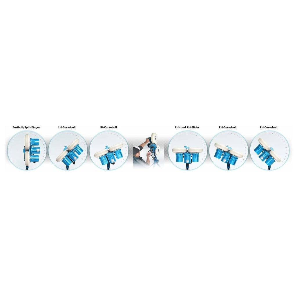 Select-A-Pitch Dial: The BP2 throws the following six pitches at the turn of a dial — Fastballs and splitfingers left and right-hand curveballs, and left and right-hand sliders.