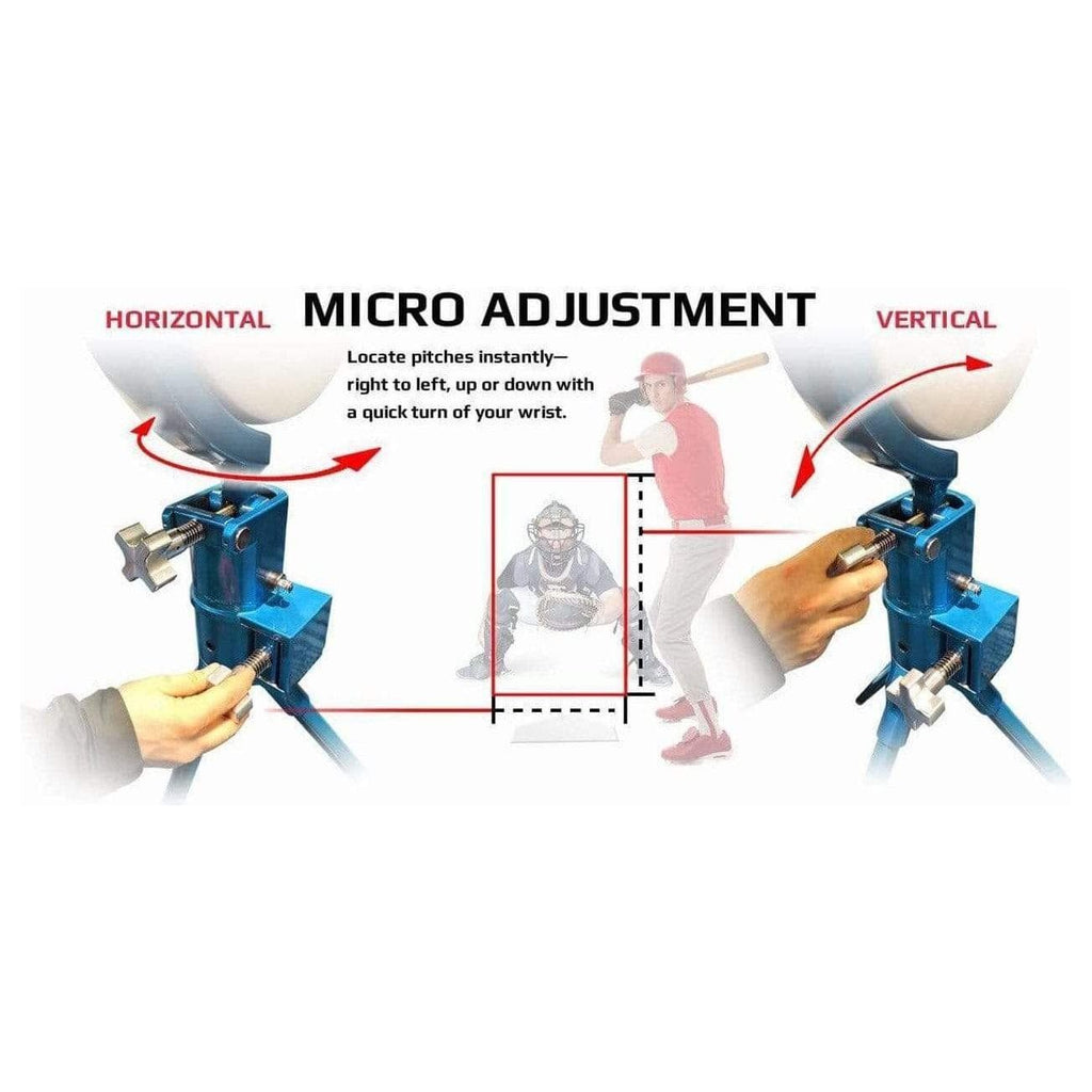 PINPOINT MICRO-ADJUSTMENT - The Pinpoint Micro-Adjustment is the most advanced and easy to use pitch targeting system ever developed for 1, 2, or 3-wheel pitching machines (patent pending). Locate pitches instantly - right to left, up or down, with a quick turn of the wrist.