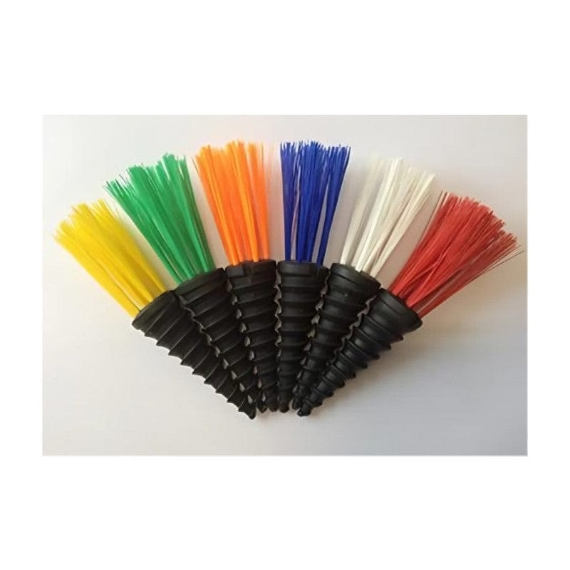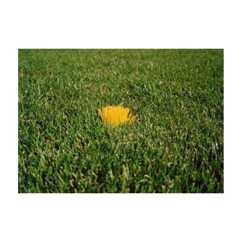 POWERSHOT athletic field ground marking tool is installed in the soil at line intersections, or, on lines on football, soccer, lacrosse, field hockey, rugby, grass sports fields. Its different color coded synthetic grass tufts are synthetic fibers set on a tough recycled polypropylene spiral cone base. Once installed on a natural grass sports fields, the white, red, blue or yellow tufts are still visible and used as reference points on the athletic fields after the field paint has faded out.