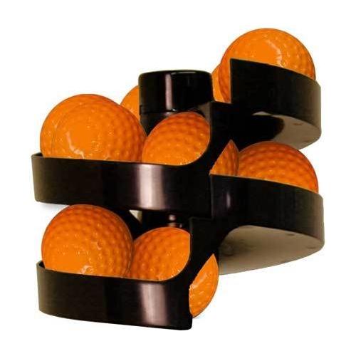 PowerAlley Auto Ball Feeder holds 12 lite-balls or baseballs. The PowerAlley Auto Ball Feeder attaches to both the PowerAlley Lite-ball Pitching Machine and the PowerAlley Pro Pitching Machine. Able to hold 12 baseballs, the PowerAlley Ball Feeder delivers a ball every 9 seconds allowing you to hit baseballs anytime you want all by yourself.
