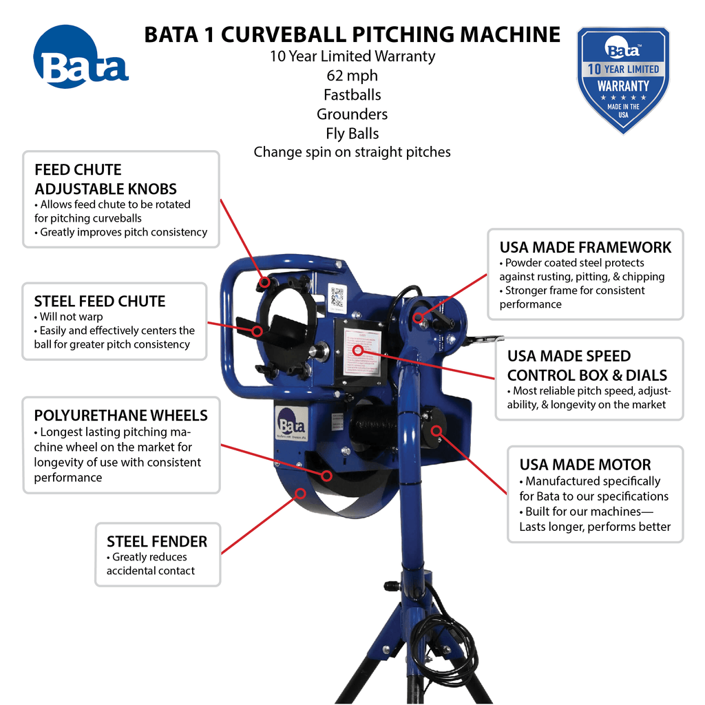 BATA B1 Curveball Baseball Pitching Machine PM Bata B1C BB 10